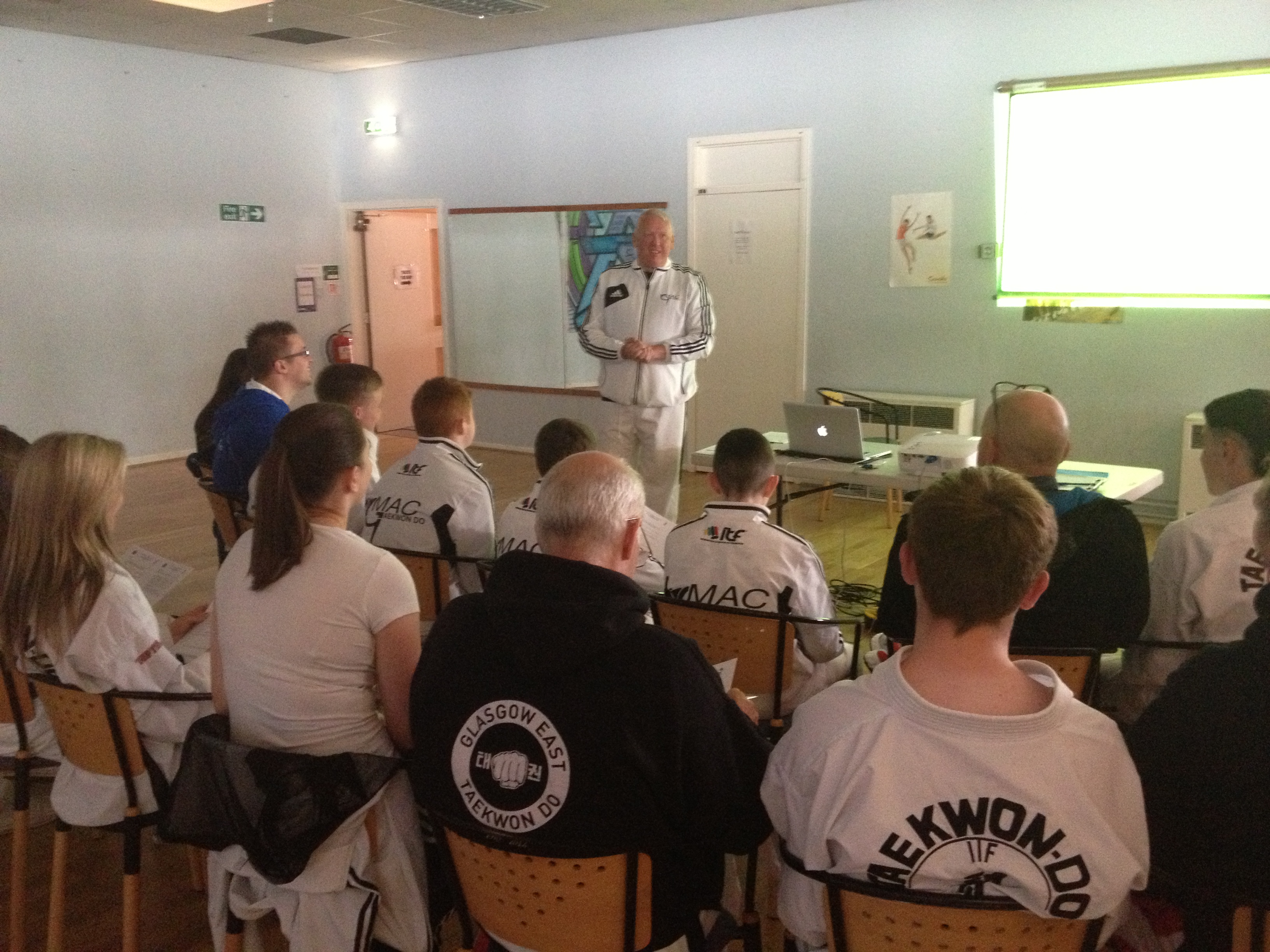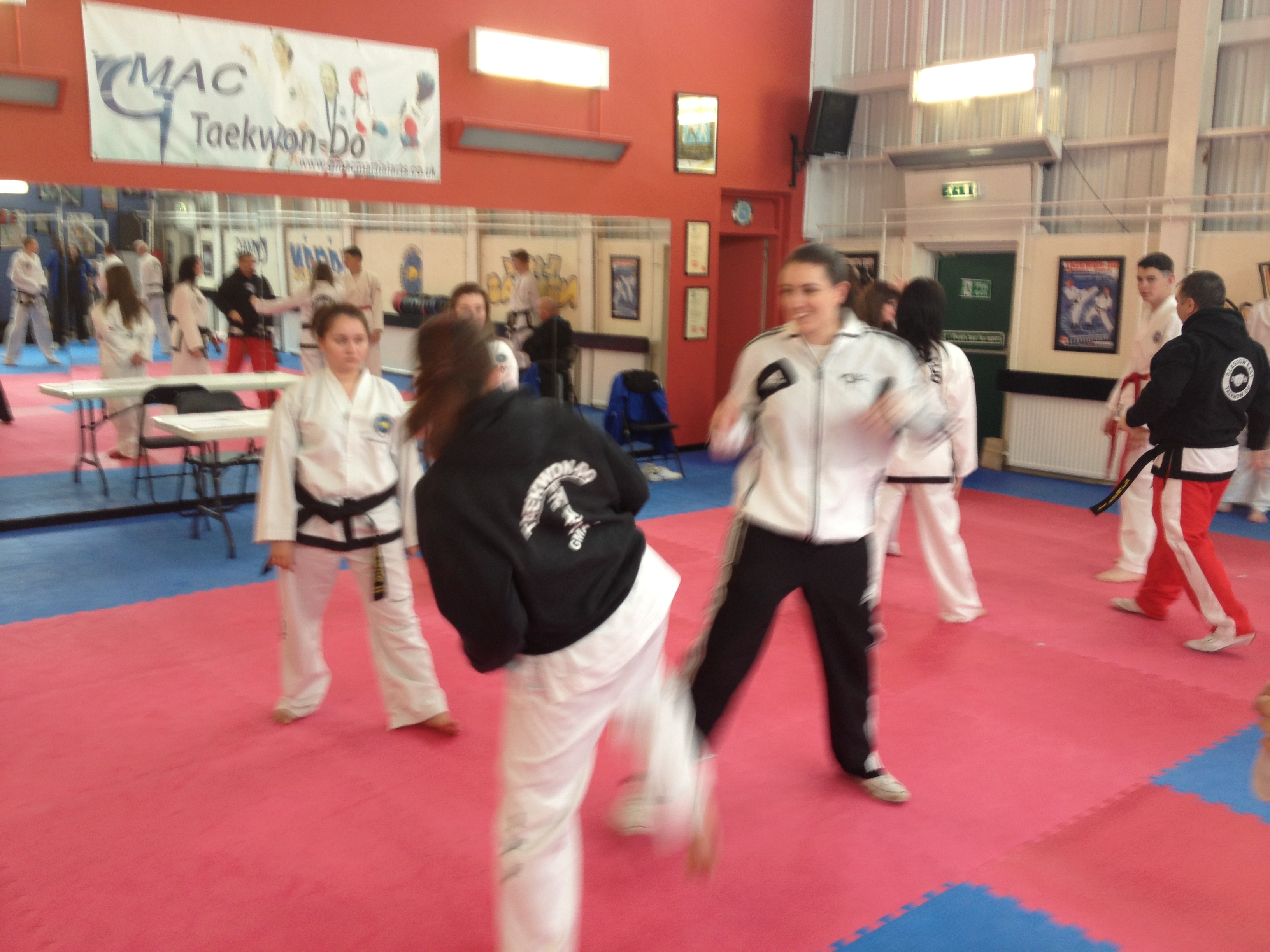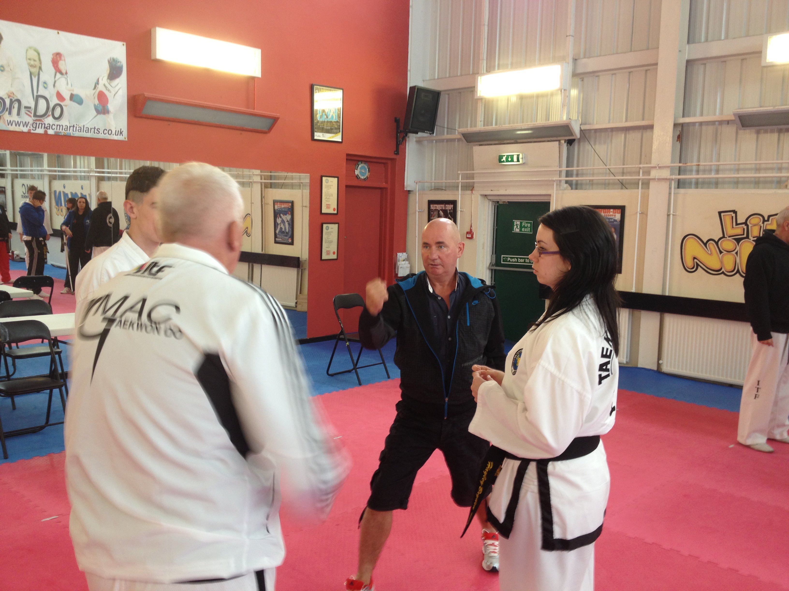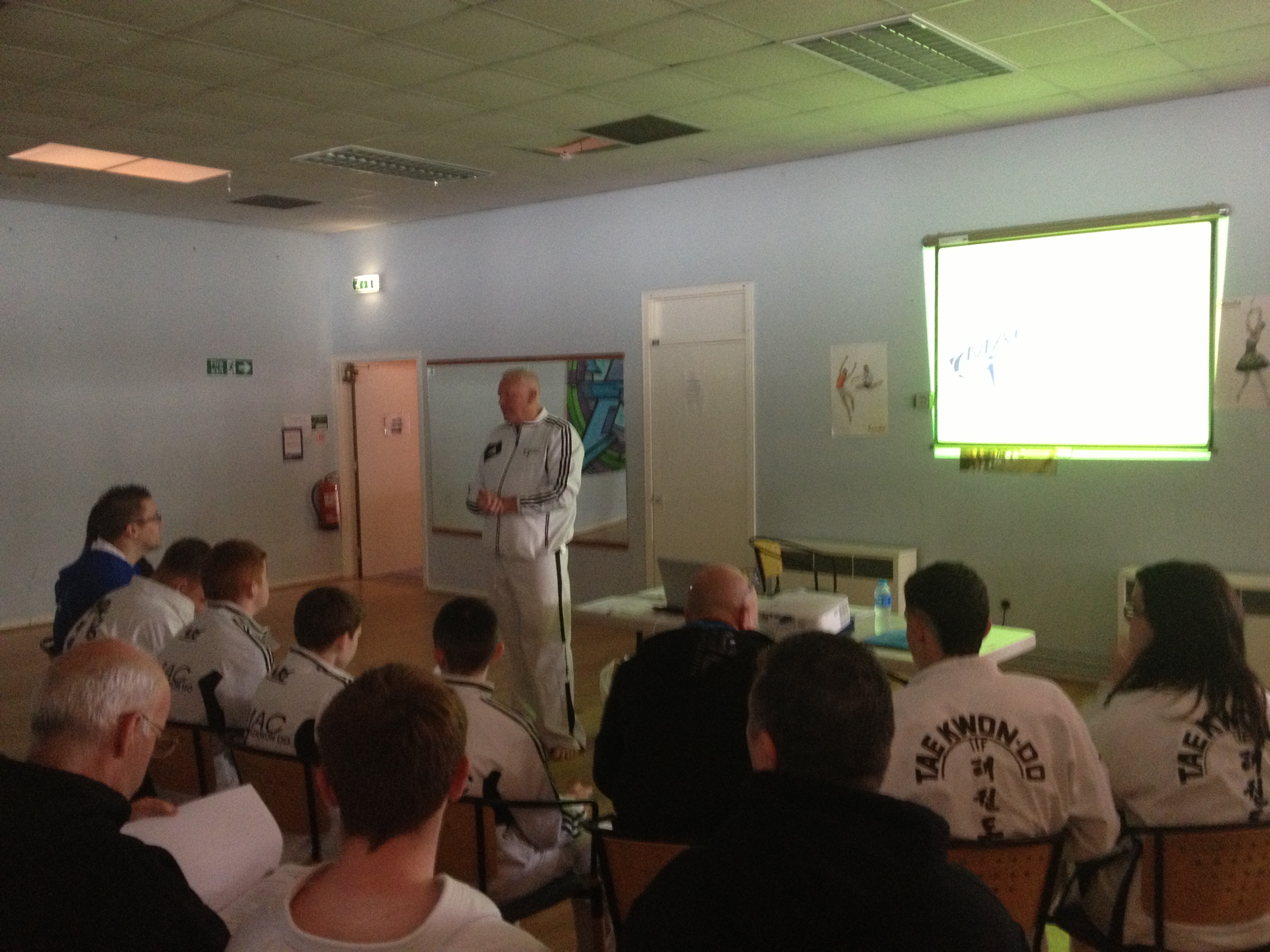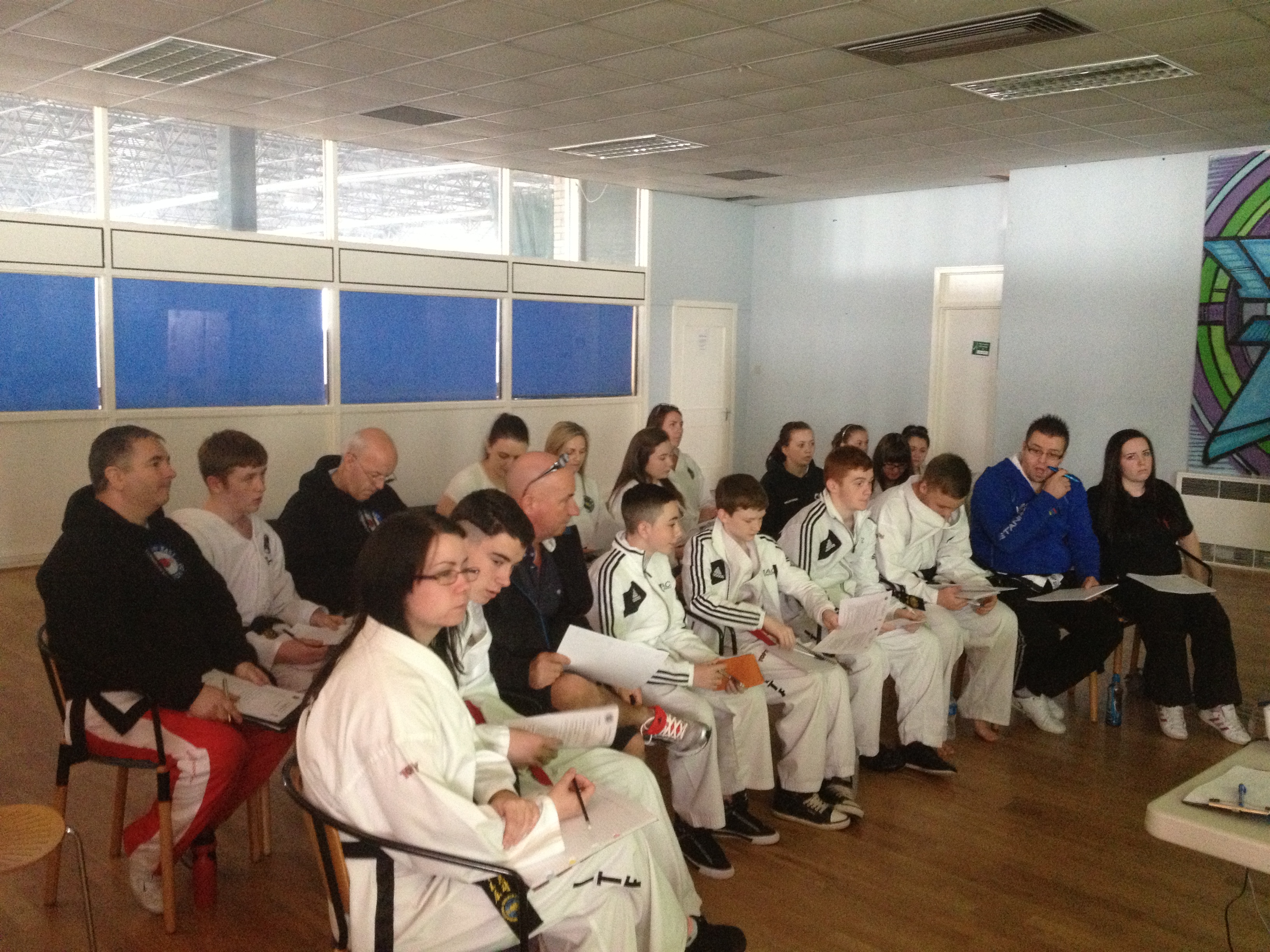 The course kicked off at 10am with an introduction to the ITF Tournament and Umpire Rules from Mrs McIlvaney with some visual examples of Pattern, Sparring, Special Technique and Power whereby the participants could score and give a result on the video examples they were shown.