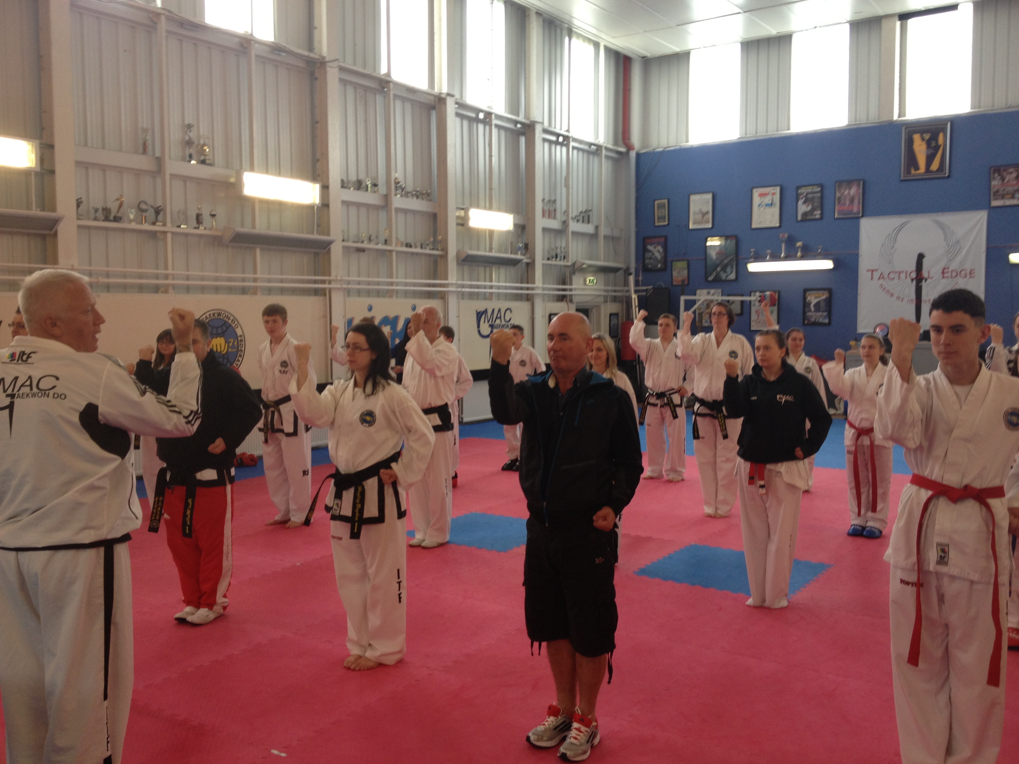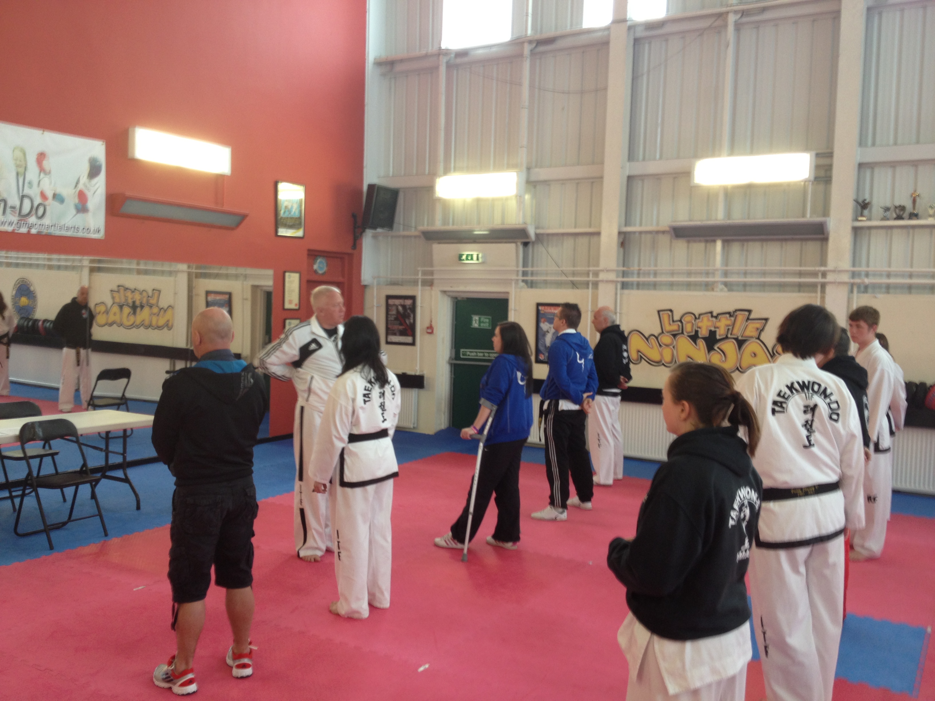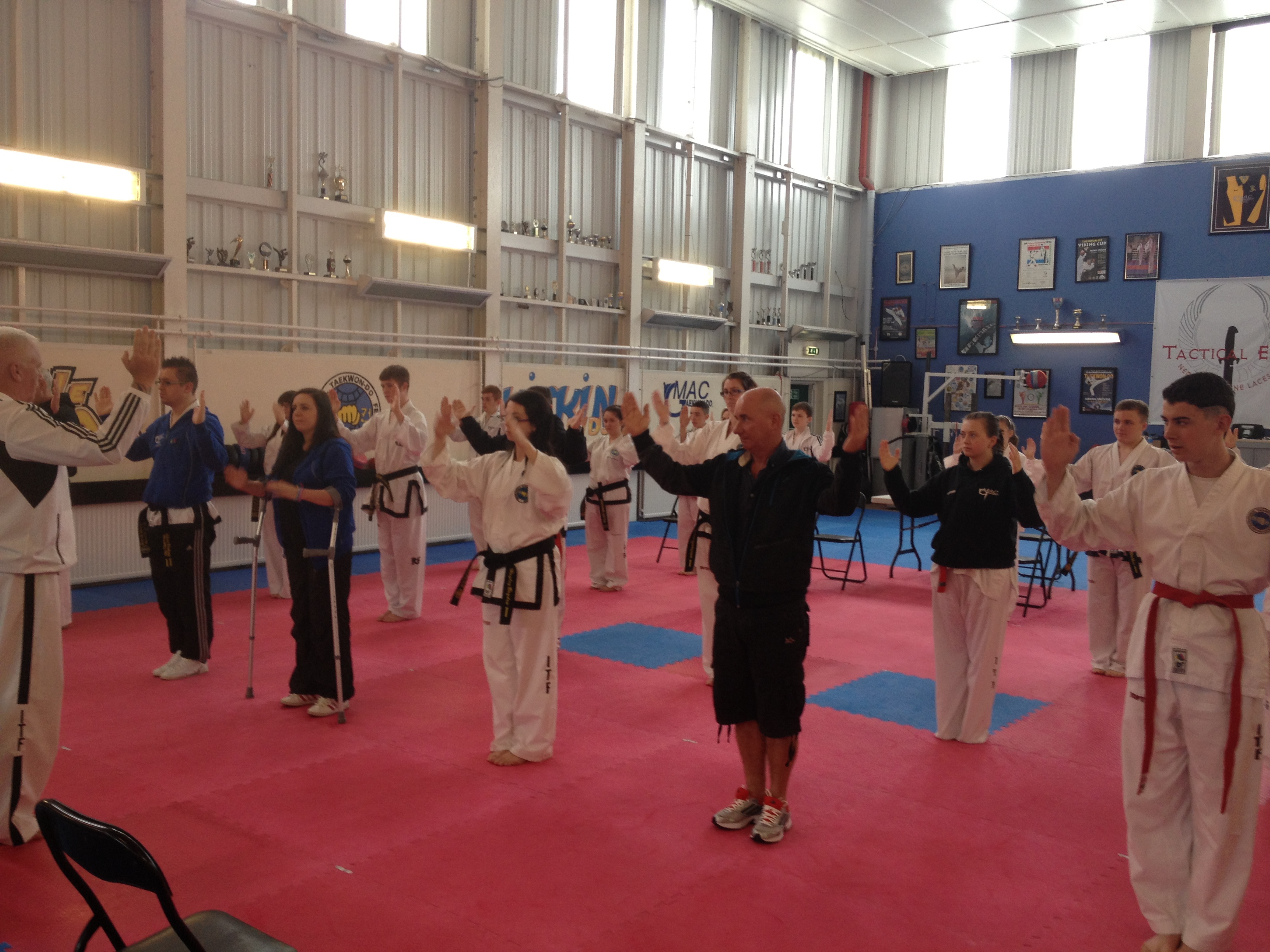 After the presentation on the updated rules, we advanced to the Dojang for some practical application of the rules ran by Mr McIlvaney. ย All participants were taught the correct way to start each event, the correct terminology to use throughout each event, and the correct way to give warning’s & fouls during a sparring bout. ย Each participant was then given the opportunity to be Jury Presidents, Pattern/Sparring Judges as well as Centre Referee’s for the afternoon and put these newly acquired skills into practice.