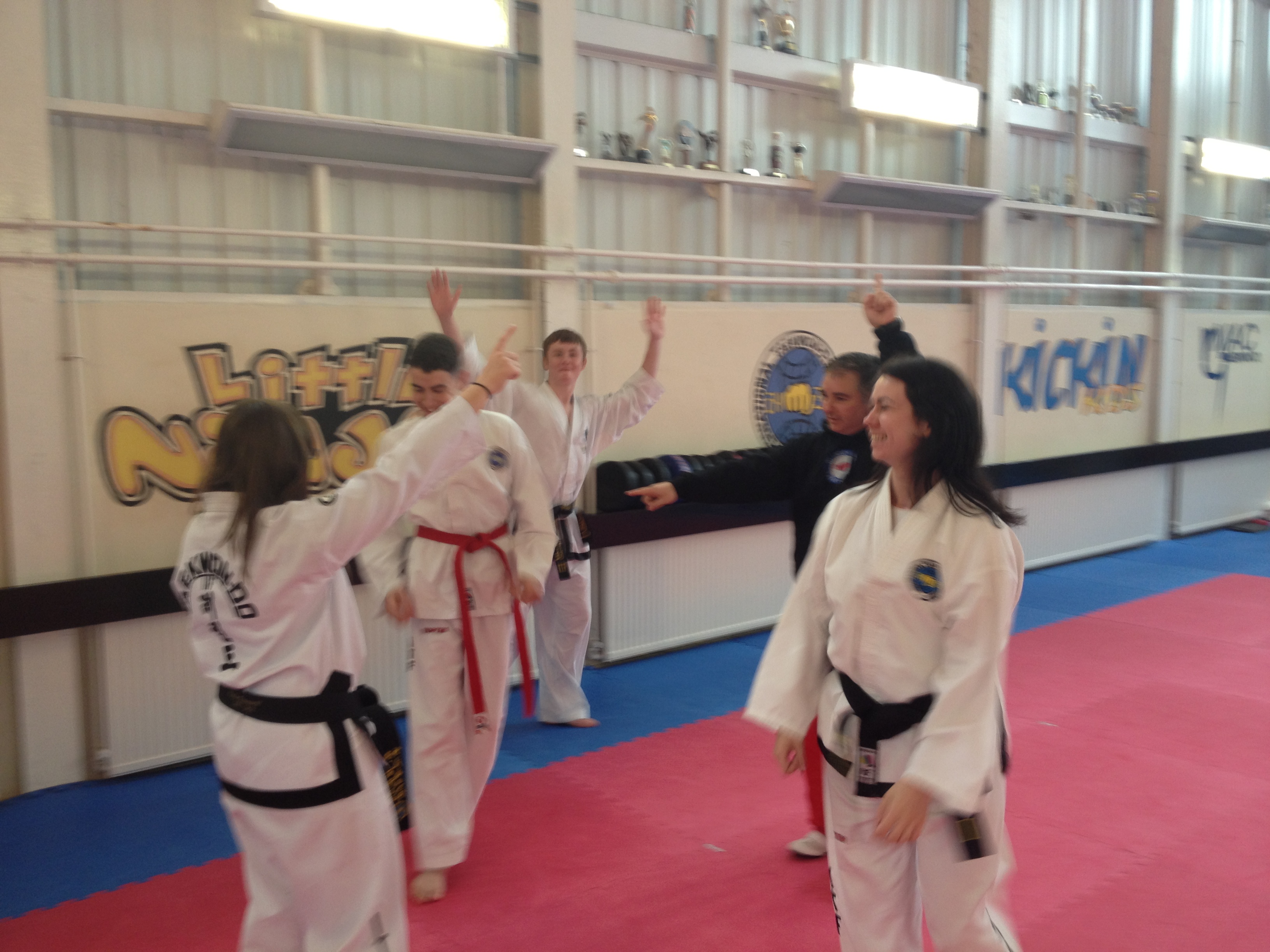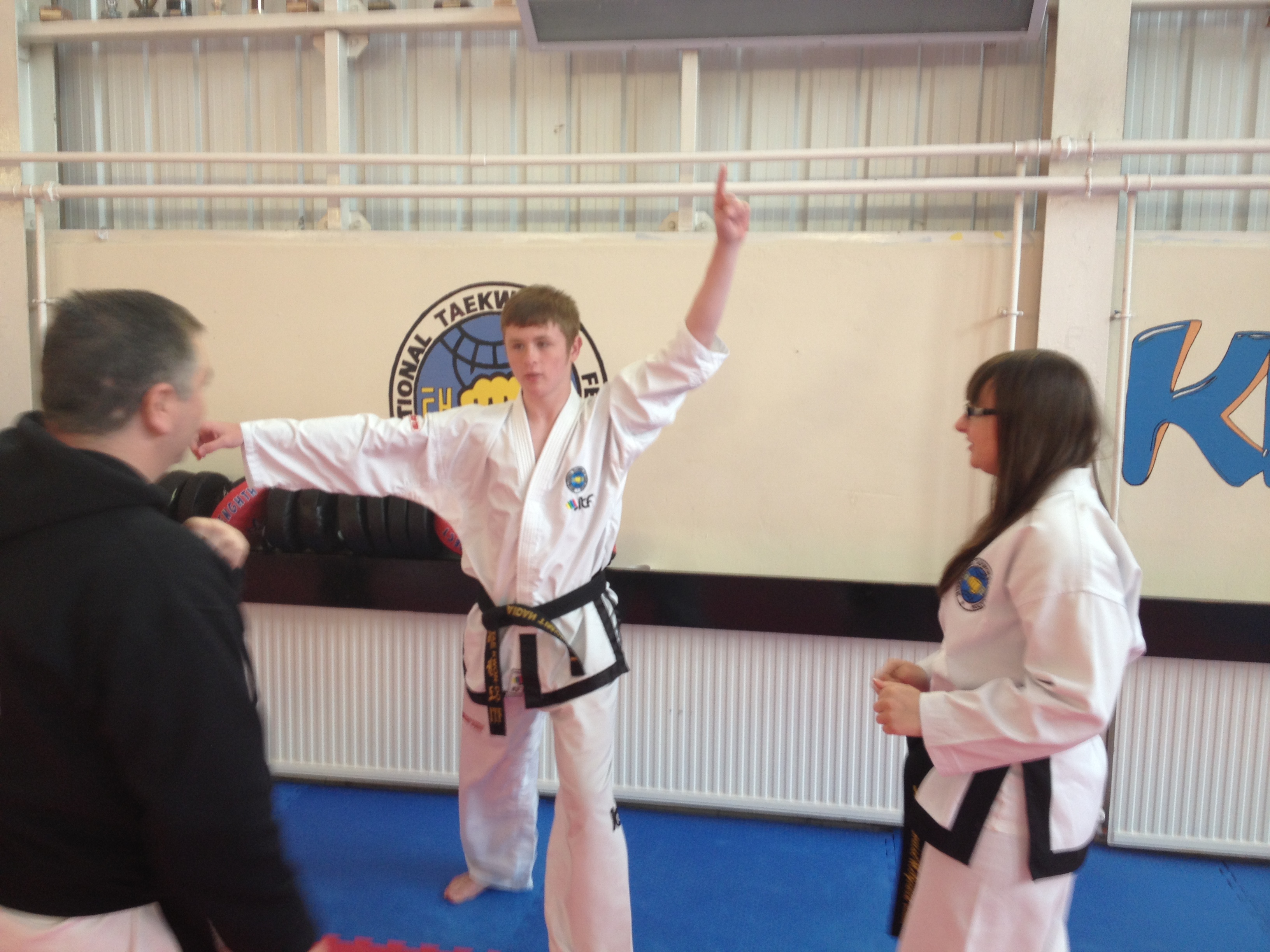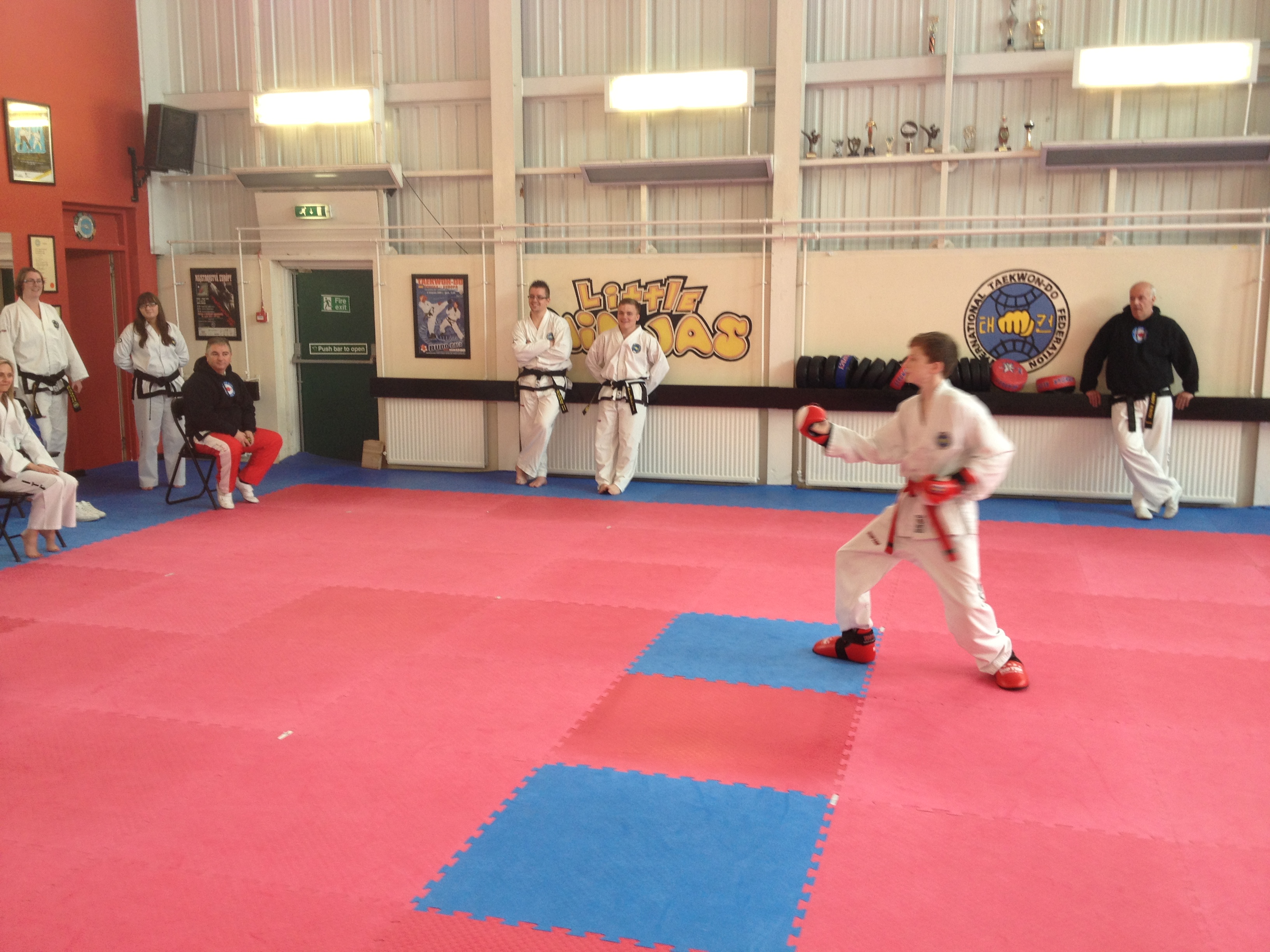 After the presentation on the updated rules, we advanced to the Dojang for some practical application of the rules ran by Mr McIlvaney. ย All participants were taught the correct way to start each event, the correct terminology to use throughout each event, and the correct way to give warning’s & fouls during a sparring bout. ย Each participant was then given the opportunity to be Jury Presidents, Pattern/Sparring Judges as well as Centre Referee’s for the afternoon and put these newly acquired skills into practice.