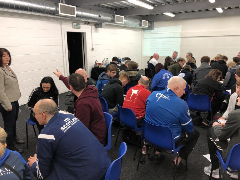 The Introductory Course (Level 1), was presented by Mrs. Angela Barrie, ITFS’s Child Protection & Safeguarding Officer. The morning’s course saw the 36 participants work together in a workshop type format, initially discussing what Safeguarding and Child Protection are, with Mrs. Barrie offering information as to the processes of the Child Protection system in Scotland, and the role that Disclosure Scotland, and the PVG Scheme play in keeping our children safe as well as promoting safe practice within our roles as Taekwon-Do instructors.