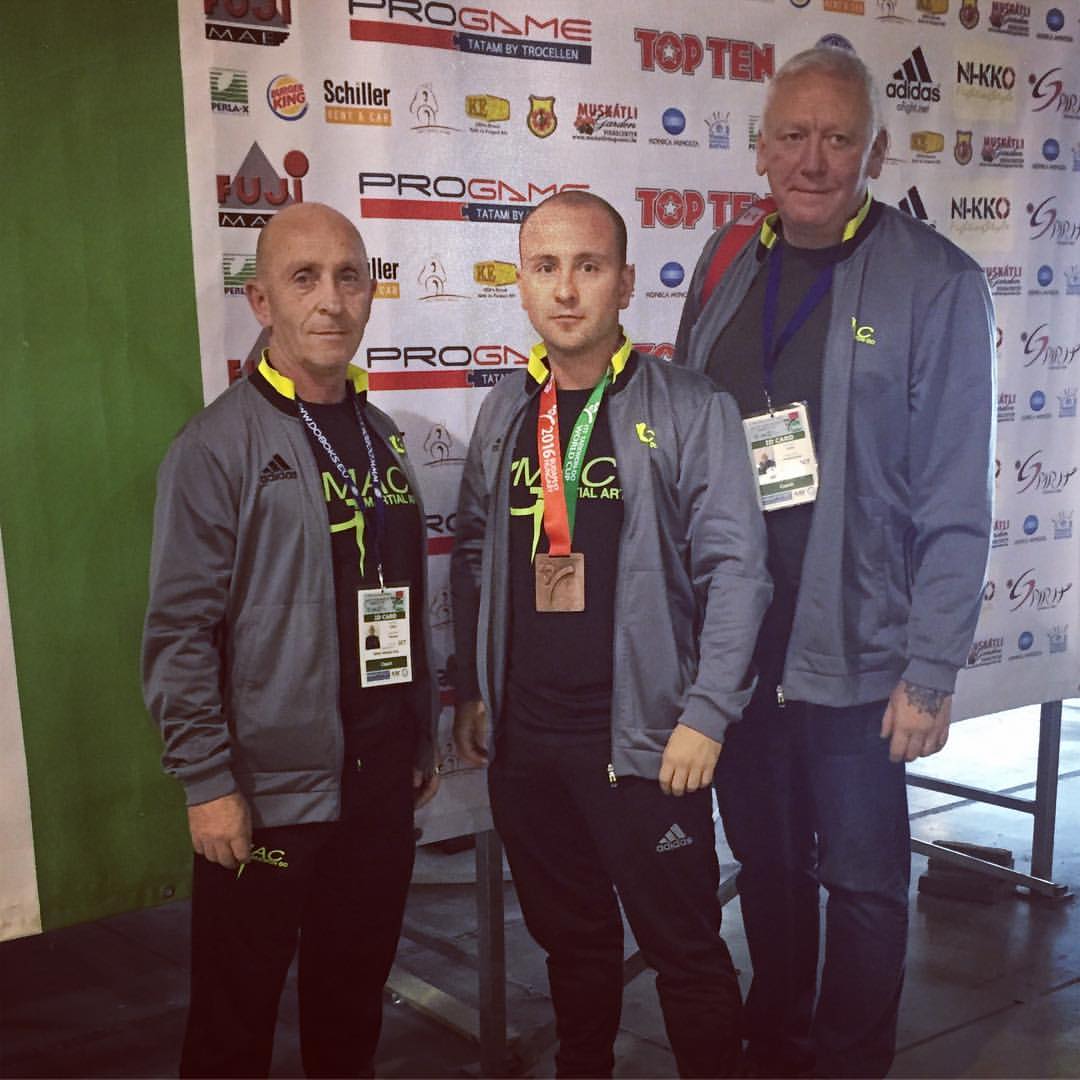 After arriving in Budapest on Monday evening the team headed straight to their accommodation for the week, and settled in before heading out for a quick bite to eat, well those who weren’t trying to make weigh the next morning did. Tuesday morning was registration and weigh-in at the venue. Mr. McIlvaney and Mr. Munro completed the registration process first thing, which the team to the opportunity to train (in the living room area of the apartments no less – very novel approach). After training they gathered and headed to the official weigh-in, where everyone made weight first time, with kilo’s to spare. Great effort all round after months for training and nutritional management. Promptly after weight check they headed off to re-fuel and prepare for the 5 days competition ahead.