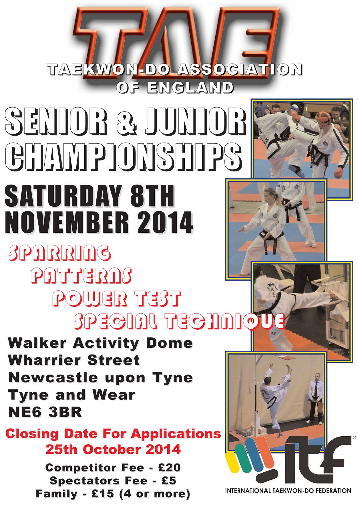 Taekwon-Do Association of England are hosting their Junior & Senior Championships on Saturday 8th November.