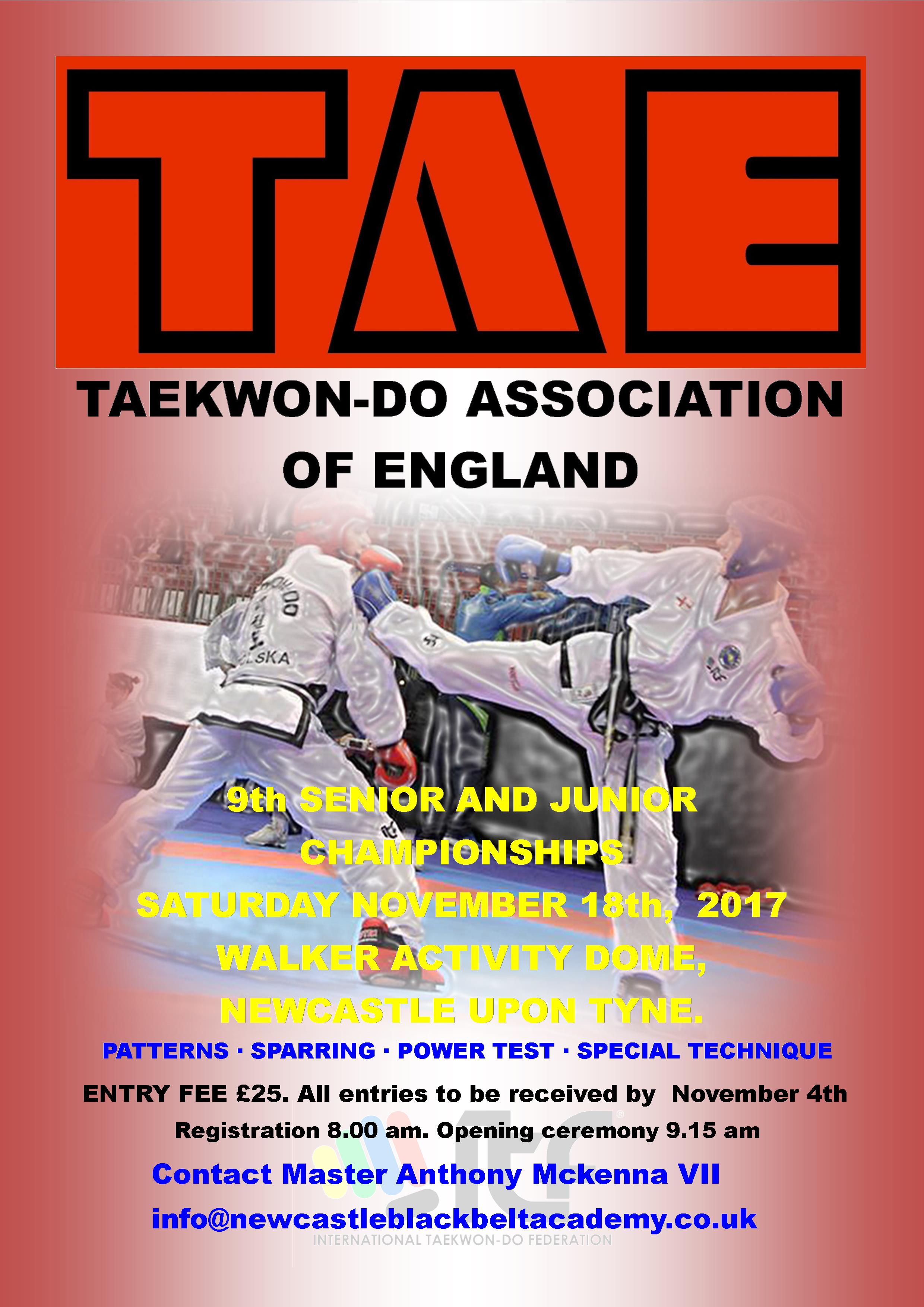 We have been invited to the 9th Annual TAE Senior/Junior Championships, to be held on Saturday 18th November 2017 in Newcastle upon Tyne.